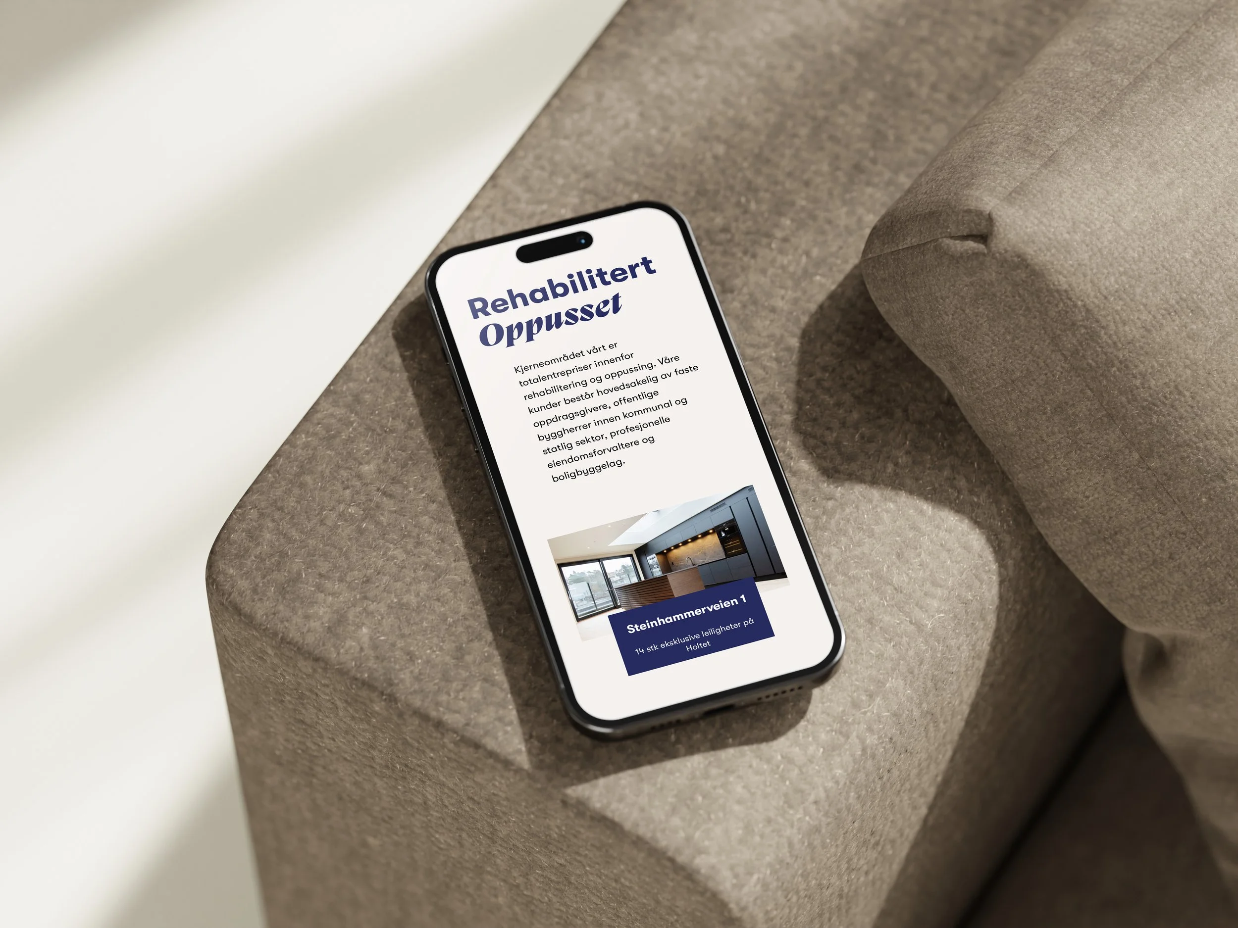 Den nye nettsiden ble bygget med brukervennlighet som hovedprioritering. Vi utviklet en navigasjonsstruktur som gjør det enkelt for bruker å finne frem til ønsket informasjon. Vi la vekt på å fremme selskapets fokus på bærekraftige løsninger og rehabilitering, slik at dette ble tydelig i både tekst og design.